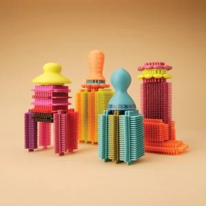B Stackadoos 68 chunky pieces which are easy for little hands to connect.Great for building with and making wonderful creations. All the pieces come in a reuseable plastic jar – great for storage! A booklet is included for even more ideas. Age 2 years +