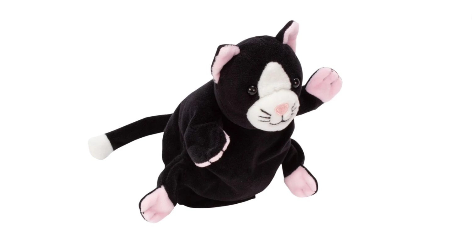 Beleduc puppets fit literally like a glove, there is a cuff to keep the puppet in place, then place each finger and thumb to control the puppet, making this Cat have four independently working legs as well as a moving head and neck. Its easy to make the puppet move and a medium adult or child’s hand will fit into the glove.