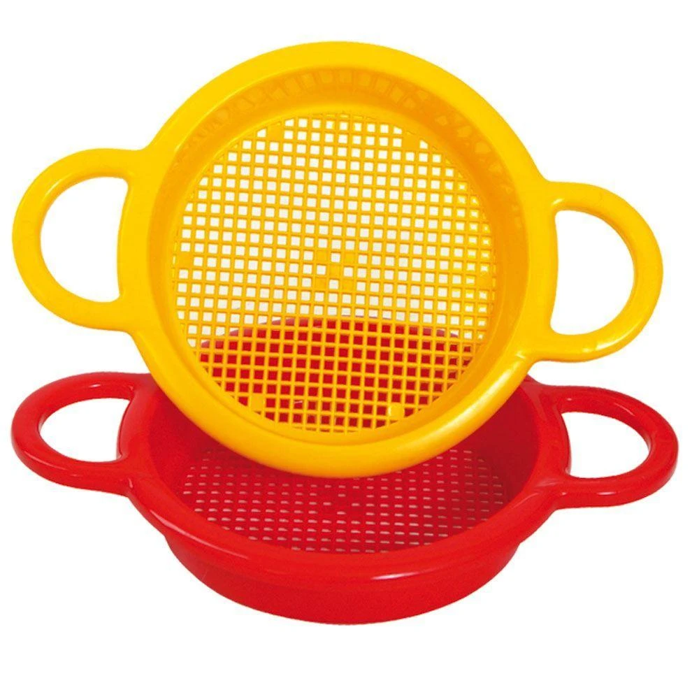 Use this brightly coloured sieve in your sandpit or garden and see what happens when you put sand, soil or even water into it. Make sure you give it a good shake holding onto the large handles. One sieve sent not two as shown on the image. Available in red or yellow. Age 1+