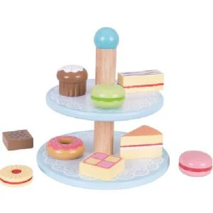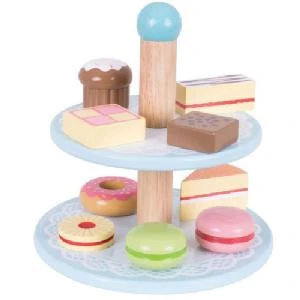 Any one for afternoon tea? this 3 tier wooden cake stand comes with 9 painted wooden cakes, so you can treat people to tea and cakes. Age 3+