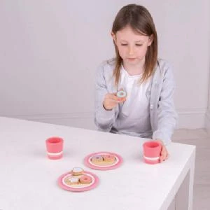 Tuck into some delicious milk and cookies, or share a sweet treat with a friend or family member. This delightful wooden play food set includes 6 wooden biscuits, 2 plates and 2 cups. A great way to inspire creative and imaginative play sessions, and a great addition to any wooden play kitchen. Develops dexterity and improves social skills from an early age. Age 3 +