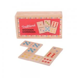 A box of large wooden Dominoes, letting little ones join in the fun of the game and learn as they play. The set of 28 colourful domino tiles come in a wooden storage box with sliding lid to keep them secure when you have finished playing. Age 3+