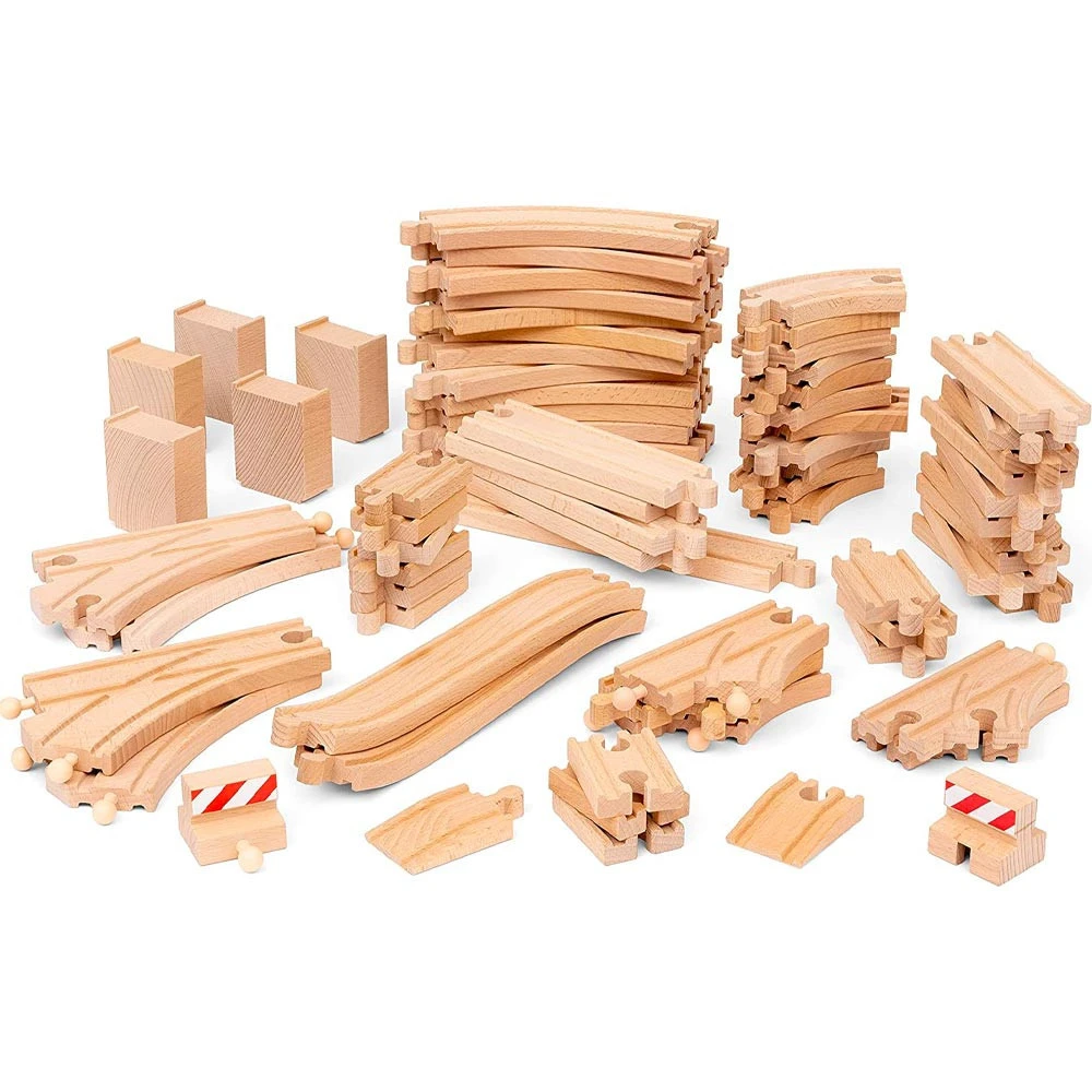 A giant pack of 70 pieces of Brio wooden track to extend and grow your train set, the box contains 1x Long Straight, 4x Medium Straight, 10x Short Straight, 12x Long Curve, 11x Short Curve, 2x Ramp, 12x Mini Tracks, 2x Stop, 5x Support, 2x Ascending, 5x Small Switch, 4x Large Switch.