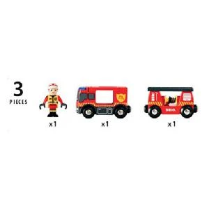 Race to the scene with lights flashing and siren blaring quietly, raise the ladder and unroll the hose ready to save the day. This Fire Engine is push along but has lights and a siren, the fire fighter gets to his seat through the lift up roof. The carriage has a lift up ladder and a hose and real which can be rewound up when you have finished putting out the fire. Fire Fighter included. Age 3+