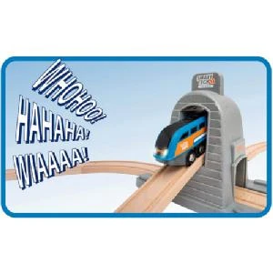 A battery powered train set with all the best ideas included but you can still fit it into your current track and all your other trains can still use the tunnels, stations and track. This Set has some fantastic features, the Engine has record and play, press the red button on the top to record your own sounds, which will automatically play when it passes under the orange tunnel. It also will respond to Smart Tech accessories with multi coloured lights, motion and sounds or pair the engine with the Smart Tech Sound app and you can customise the sounds further. As with all Smart Trac, the 6 tunnels create a unique response as the engine passes through them, changing the direction, stopping the train, slowing the train, watch it slow and stall after it passes the break down tunnel and come back to life as it passes the fixing tunnel, not forgetting the tunnel which plays your pre recorded sound. Move these tunnels round your track to change your trains journey. Link the train up to Bluetooth to control the light colour, speed, horn and further customise the sounds your train can make. This set includes Smart Tech Engine, 2 carriages with opening roofs to seat passengers, 2 passengers, 2 trees, a 2 level tunnel, 2 stations, track with corners and rises and 5 Smart tunnels. Age 3+ 2 x AAA Batteries requiredÂ