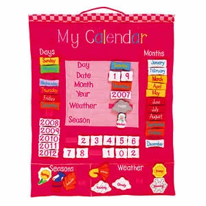 My calendar is designed to make children aware of the days, months, weather and seasons. Each day the calendar is changed selecting what ever suits that day. Includes days of the week, months, years, weather and seasons. Age 2-adult. 40 pieces.