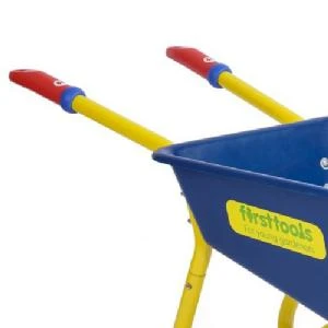A large child sized wheel barrow that is actually big enough to carry things and be suitable for older children that struggle with a adult barrow but are too tall for a children’s one. Its metal frame and plastic body makes it light, strong and sturdy and a pneumatic wheel makes pushing easy.