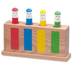 This Galt classic pop-up toy is made of wood and has four coloured push-up faces, each face is a different colour. The faces are easy to both pop up and push back down. Press the colourful characters and they will bob up and down, stimulating baby’s interest. Later, baby can progress to colour matching the characters to their slots. Ideal for the developing child, encouraging hand and eye co-ordination and colour recognition the Galt classic pop-up toy has wooden characters lift out and can be played with independently. It is crafted in quality wood for durability and lasting pleasure. Age 12 mths +