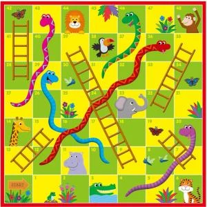 A 2 in 1 game, this is a 36 piece puzzle which you put together then you play Snakes and Ladders. The large foam counters and dice make this game easy to play for little ones and just as fun for older ones with the friendly looking animals you have to pass and avoid some very long snakes. Age 3+