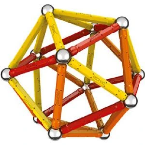 Geomag Colour 64 pcs leads the way to ingenious building. Magnetic rods and non-magnetic metal spheres provide simple construction play with structural potential that goes on to infinity! The set includes 30 spheres, 30 orange, yellow and red rods, 2 square platforms and 2 pentagonal platforms. The Geomag Colour line is the best way to introduce the fascinating and fun world of Geomag’s magic and surprises, dynamic creations, bright colours and incredible magnetic forces. Magnetic rods and non-magnetic steel spheres that come together to create a huge number of shapes. Geomag platforms allow for even more rigidity to structures, allowing to carry creations more easily. The spheres click into the platform and can remain there, becoming a base for endless construction possibilities. Available in 5 boxes from 35 to 127 pieces. Geomag Classic is an inventive system of simple construction made of 58 mm magnetic rods and steel spheres. A huge number of shapes, geometric figures and models of every kind can be constructed. Geomag stimulates creativity and logical reasoning. The variety of the shapes and their transformations make it possible to renew structures continuously. Imagination is all that is needed to create a unique masterpiece. Geomag world SA is the manufacturer of Geomag toys. All products are designed both to entertain and to stimulate the imagination and curiosity. Geomag toy can also become an amusing pastime for the whole family, reuniting parents and children in an activity of extraordinary creativity. Age 3 +