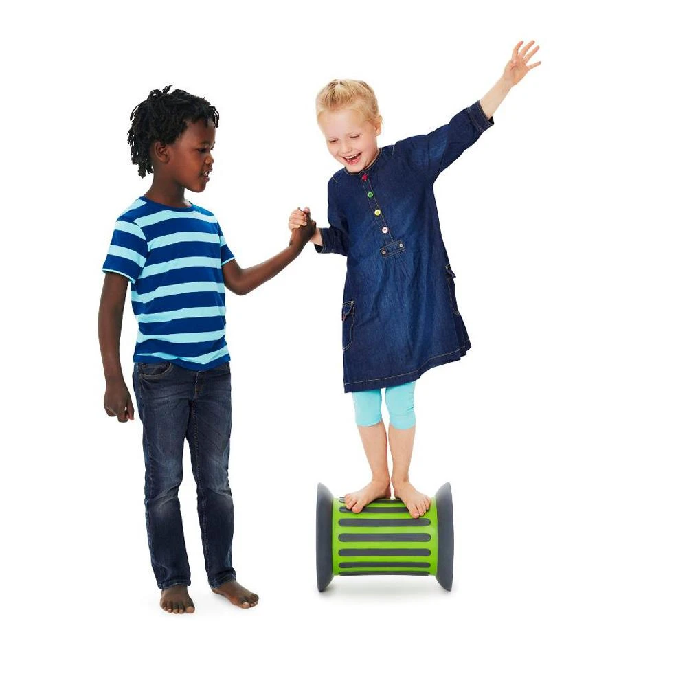 The Roller is a beautiful new conceptualisation of a fundamentally challenging motor activity object. Leave it out, and you will see both children and grown-ups tempted to test their skills by stepping up and trying to set the Roller in motion. It offers a progressive motor skills challenge, from small kids just managing to keep their balance with the support of a friend or a hand rail, to older children pushing the boundaries of what they can do without falling off. Whether it is used for play or in therapy, the Roller will stimulate the primary proprioceptive sense, as well as the vestibular and tactile senses. For small children this green version contains 2.5kg of sand to allow even small children to master balance and rolling.