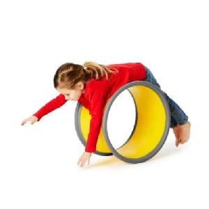 Roll forwards, backwards, inside, over, crawl through or stand on. All the time developing core strength, balance, agility and having lots of fun. Suitable for children of all ages, even small children can get the wheel moving, lying on their tummy and control their movements, with help first and then independently. You can also stack the wheels to create crawl through and stand on structures. Watch the film below. Age 3+