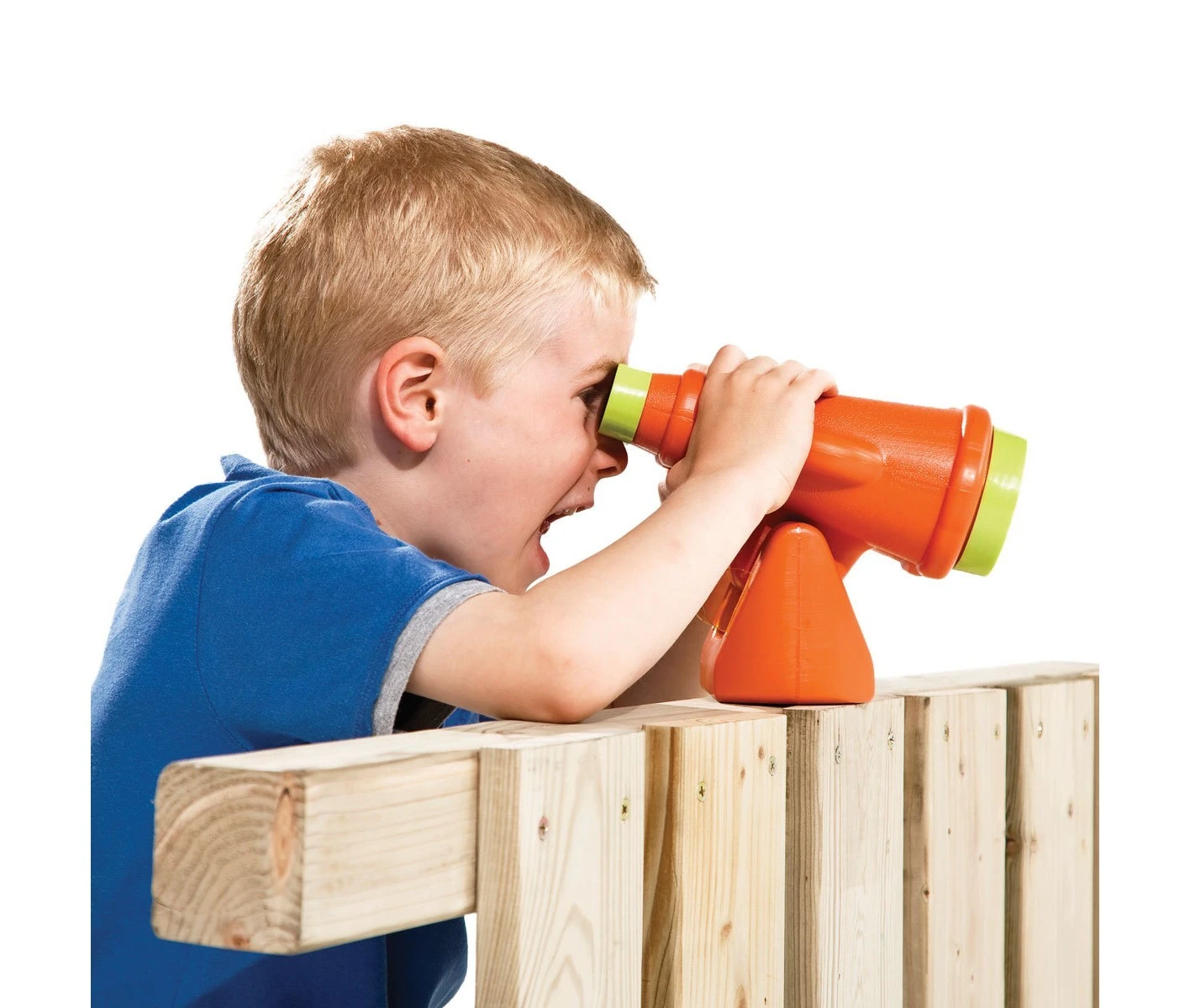A set of large binoculars to mount onto your frame and improve the lookout, see what you can view from the top of your frame, birds in trees, the man next door, mum making tea! The set comes with bolt to attach it to a wooden beam and a set of pink lenses in case you want to view the world in pink! Sorry they don’t really work but they do look the part with plastic lenses at both ends. Mounting bracket is 12 x 8cm
