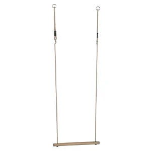 How many different ways can you find to hang, sit or swing from this bar for all budding gymnasts or those who just like hanging around. A wooden bar with a pair of adjustable length, durable all weather hemp ropes, comes with galvanised steel rings to fit on most swing frame shackles.