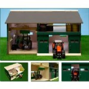 A wooden machinery workshop with overhead crane, plenty of space for working on machines and extra storage upstairs for all those parts. The main shed is split into a large open area with fold back roof and an over head crane which can slide forwards and back to move the heavy parts round the workshop. The other half has sliding double doors on the front of the shed, a folding roof and loft storage for all your tools, spare dual wheels and anything else you need keeping out of the way. Age 3+ 1:32 scale