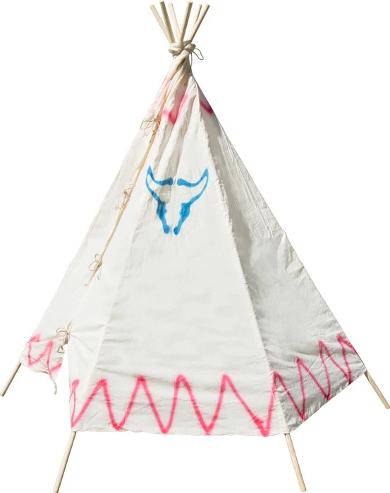 A classic wooden and material Tepee, hide, play, create a den, create a quite space or an exiting place to tell stories by torch light.
