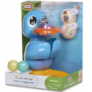 Little ones will have a ball with the Dunk ‘n Juggle Seal. When Baby throws the ball in to the hoop, the seal celebrates by clapping its fins, playing music, releasing the ball down the spiral slide, and rolling it to Baby to chase. Age 6 months – 3 years