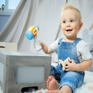 A perfectly size textured little hammer with 2 soft heads, turn the hammer on to hear it count as you tap or switch to the colour mode and the hammer lights up and says the colour name as it cycles through them, it also has a few silly sounds to add to the fun. A classic relaunched in new colours. Age 9 months +