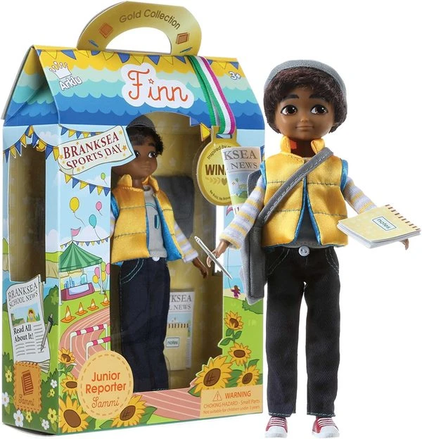 Sammi the reporter is a boy doll, with accessories including a pen, notepad, bag and paper.Â