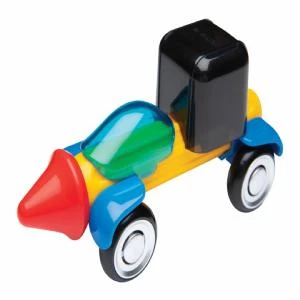 A Stick – O set for older children, use the magnetic shapes to create pull back and go vehicles. This set containers 5 different magnetic shapes plus wings, accessories such as cabs or cock pits and wheels to make vehicles. You can use the Stick – O shapes from other sets to create even more varied and creative vehicles. Age 3+