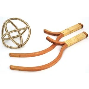 The Spinner and catching game Jabbit from Ogo similar to “Lacrosse. Includes 2 Jabbit spin-dry/rackets (Length 42 cm). Made from clear varnished beech wood with a matching Jabbit ball made from knotted cord (15 cm). Age 3 +