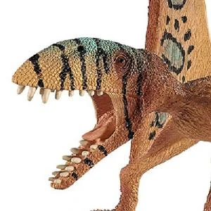 The Dimorphodon was a small flying dinosaur with a large skull and a long beak. The Dimorphodon was a small flying dinosaur with a large skull and a long beak. It hunted fish, insects, lizards and other vertebrates, which it held with its claws and then ripped apart with its fangs. With its short wings it could probably only fly short distances, for example from tree to tree. Fun fact The Dimorphodon had four to five fangs each in the upper and lower jaw.
