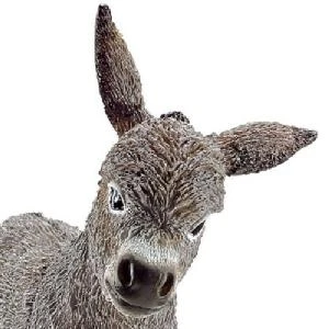 Individually hand painted donkey foal figure. The donkey has been serving mankind for thousands of years and can be used for a variety of tasks. Donkeys are very efficient mammals. They support the farmer at his work, transport loads, sire mules, keep horses company, tend sheep and are even kept as pets. In many regions they are also appreciated for their ability to live in the desert. Thanks to their robust stomachs and an ability to extract water from food, donkeys are superior to horses in that aspect. Donkeys were well-known for their use in war and their general reliability. Their numbers and popularity continue to grow.