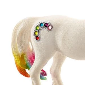 The beautiful Schleich Unicorn Mare stands proudly in the light of the morning sun, the manes of the rainbow unicorns gleam in all the colours of the rainbow. Their flanks are adorned with colourful gemstones. The shy, noble creatures are shrouded in mystery, rarely does anyone get a glimpse of them. Age 3 +