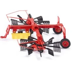 A large folding rake for rowing up your crop ready for baling or collection. Hitch up your rake, tow it to your field before you lower the independent sides and off you go, the small wheels under each side power the rakes so they turn as you go along. Age 3+