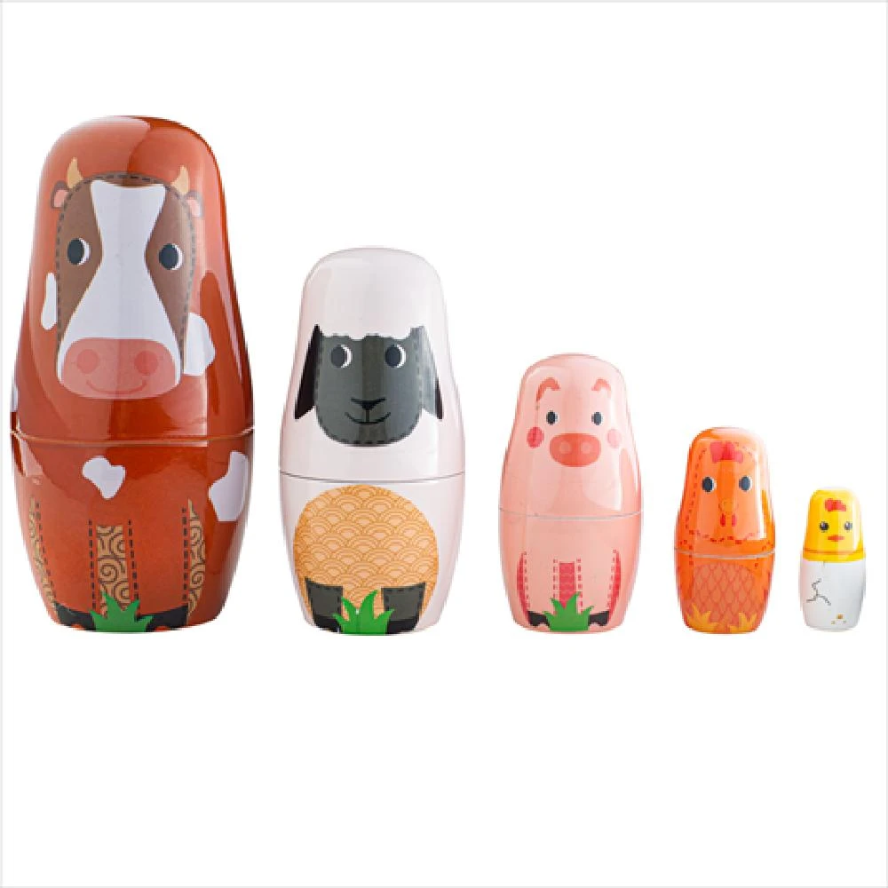 A set of 5 Russian dolls but these dolls are animals, the little chick fits inside a hen, which fits into the pig, which fits in the sheep and everybody fits into the cow. A classic toy with an animal twist, great for playing with individually or having the delight of finding animals hidden. Age 3+