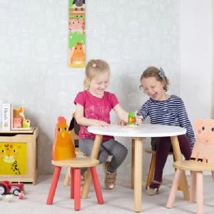 With delightfully intricate illustrations of a pig, chicken, sheep and cow the Tidlo Farm Animal Table is sure to be a hit with all farm fans. The ideal height for young children, it can used as a play table or dining table and would make a charming addition to any bedroom, playroom or even kitchen! Indoor use only. A set of four coordinating chairs are available separately, each depicting one of the animals on the table top. Requires adult assembly. Made from high quality, responsibly sourced materials. Conforms to current European safety standards. Age 3+ years.