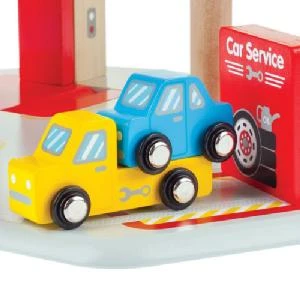 A wooden garage with lots of features and areas to play, complete with 3 vehicles and a tow truck. Do you start by putting your car through the car wash, fill it with fuel, take it to the service station or park it. To park the car, you drive it onto the lift and wind up the lift, hearing it click its way up to the upper level where you can park. When you are ready, lift the barrier and whizz down the ramp back to the lower level. The vehicles will also fit on many wooden train tracks. Age 3+