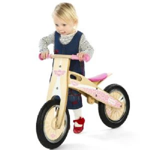 A wooden balance bike to develop balance and confidence before little ones progress onto a bike with pedals, once they get the hang of a balance bike they can whizz along, almost as fast as a standard bike, allowing them to keep up. This bike has easy grip handle bars, pneumatic tyres, an adjustable seat to grow with your child, a carry handle and most importantly a bell. Age 3+