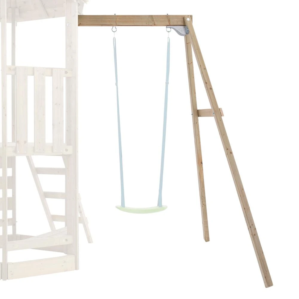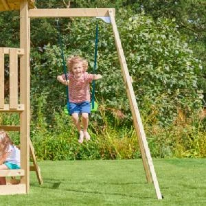 Add a swing to your TP Castlewood Tower, this single swing arm fits to the side of your tower without any dismantling, simply bolt into place. It comes empty so you can add any single person roped seat or attachment you like, including baby seats, bars and rings, swing seats. Both TP and KBT attachments will fit this swing arm.