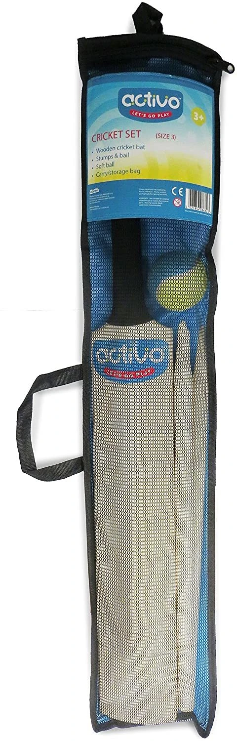 A full cricket set with bat, stumps, bail, a soft ball and a bag to carry everything in. You can take it anywere or just set it up in your garden.Â
