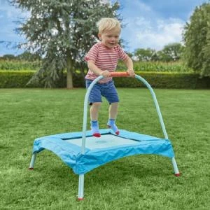 A great little trampoline to be used inside or outside. The built in handle with foam padding is removable, pads protect the frame to ensure your little one has a great time bouncing. Age 12 months