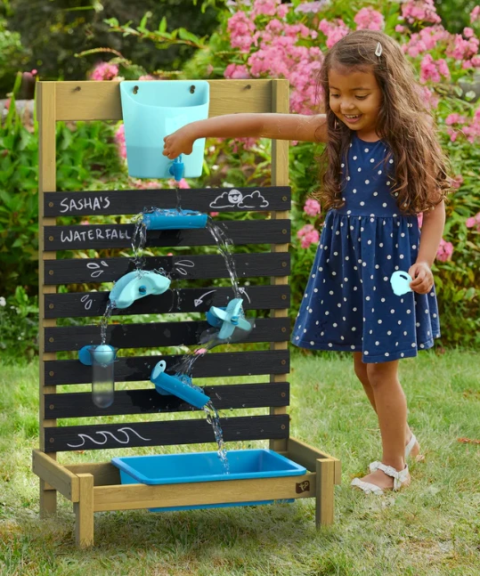 Includes: water butt, chalkboard, water rocket, water wheel, splash tub, pipe and water ramp