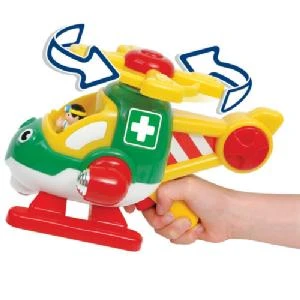 Harry helicopter to the rescue! This colourful helicopter has moving friction powered rotor when handle is squeezed. Harry has a special magnet to collect the injured animals and drop them off to safety by turning the searchlights. Comes with 3 animals to rescue, a vet figures and even has a clicking rotor. 1.5-5yrs.
